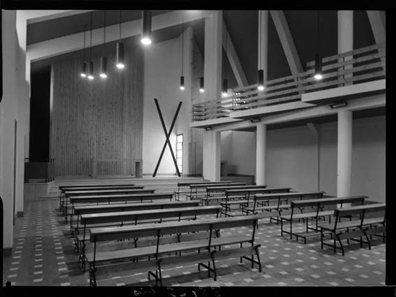 Fig. 08. Antonio Teresa Martín, San Andrés, Ribadelago (Zamora), 1960; lateral de la nave y baptisterio.