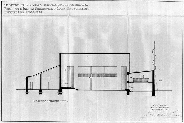 Fig. 03. Francisco Echenique Gómez, Iglesia del poblado de Ribadelago (Zamora), 1960; proyecto.
